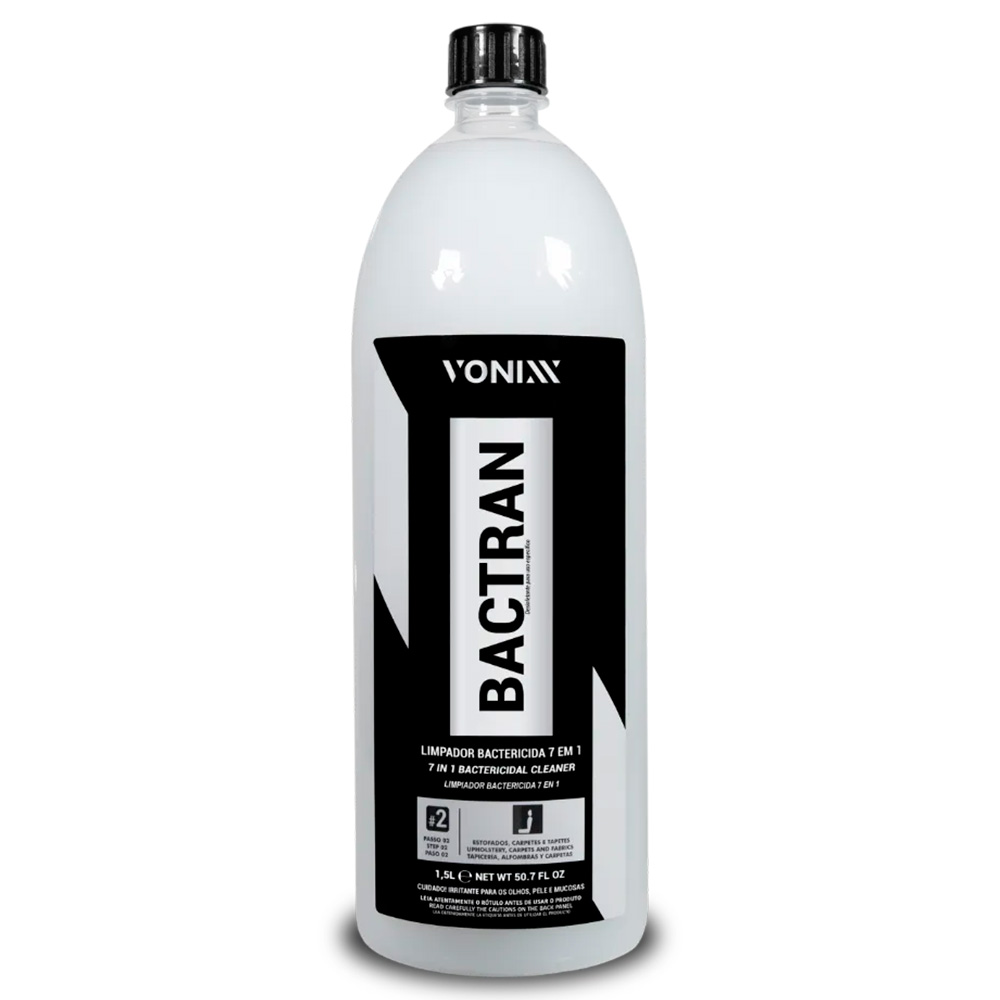 O Bactran 1 L Vonixx é um limpador bactericida ultra concentrado, de baixa espuma, formulado para uso profissional em estofados, carpetes e tecidos. Sua ação elimina manchas de sangue, café, bolores, fungos e bactérias, neutraliza odores e prepara superfícies com higiene completa.